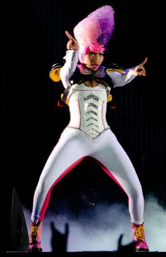 Mise en scène d’un personnage, de son propre personnage par des moyens capillaire et vestimentaire – probablement sur conseils professionnels – Nicki Minaj a plus d’une flèche talentueuse à son arc.