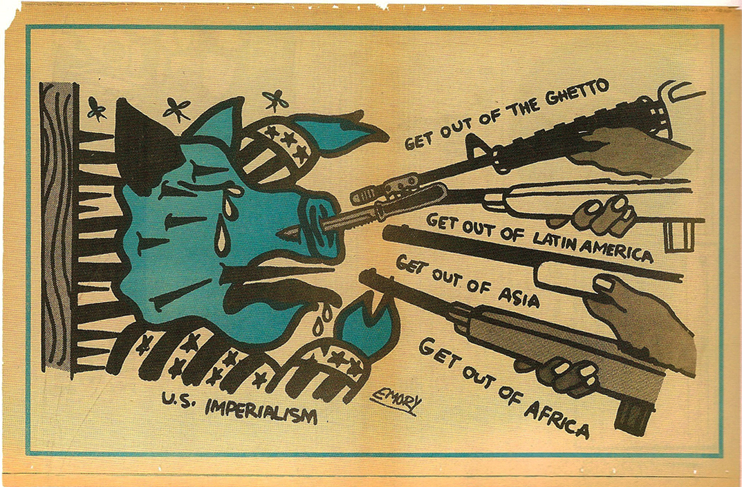 Extrait de Black Panther – The Revolutionary Art of Emory Douglas, ed Stephen Shames 2006 – ST.Clair Bourne « An Artist for the People: An Interview with Emory Douglas » pp 200