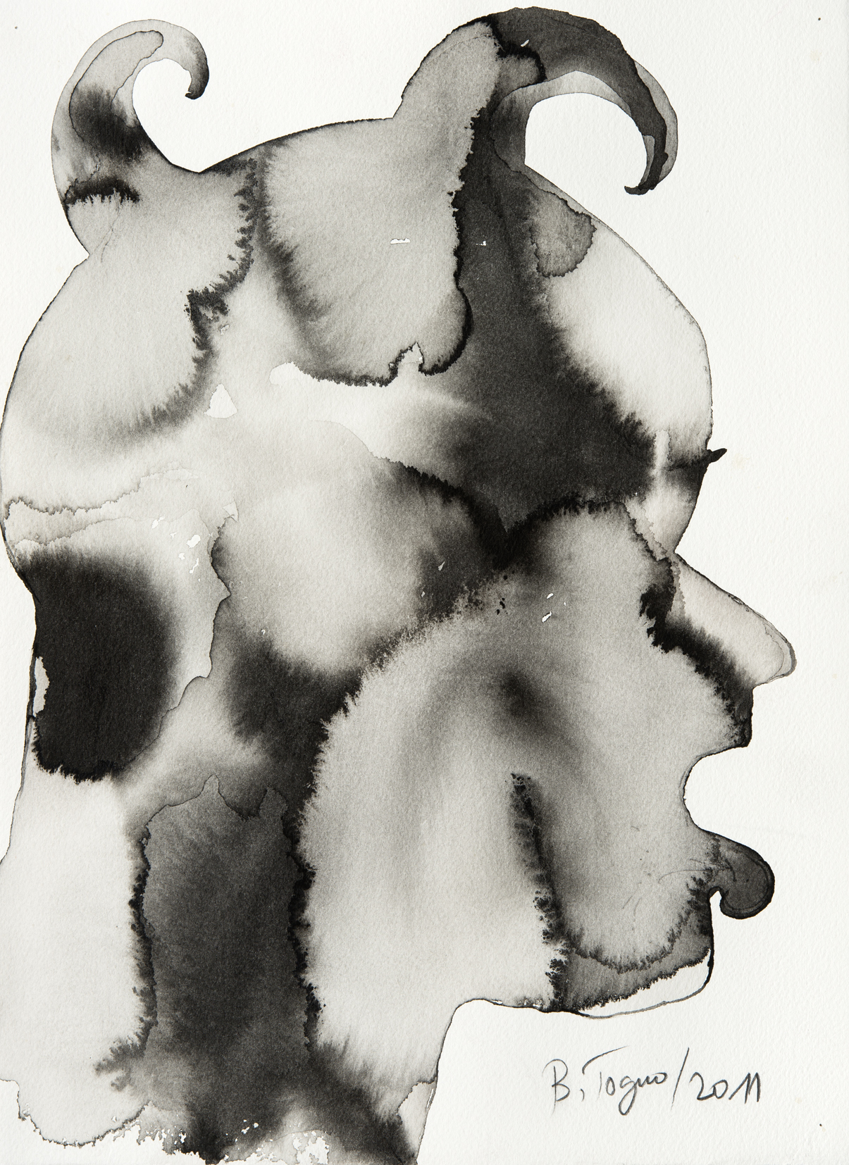 Barthélémy Toguo, Devil heads XIX, 2011, Encre sur papier (38 x 28 cm)