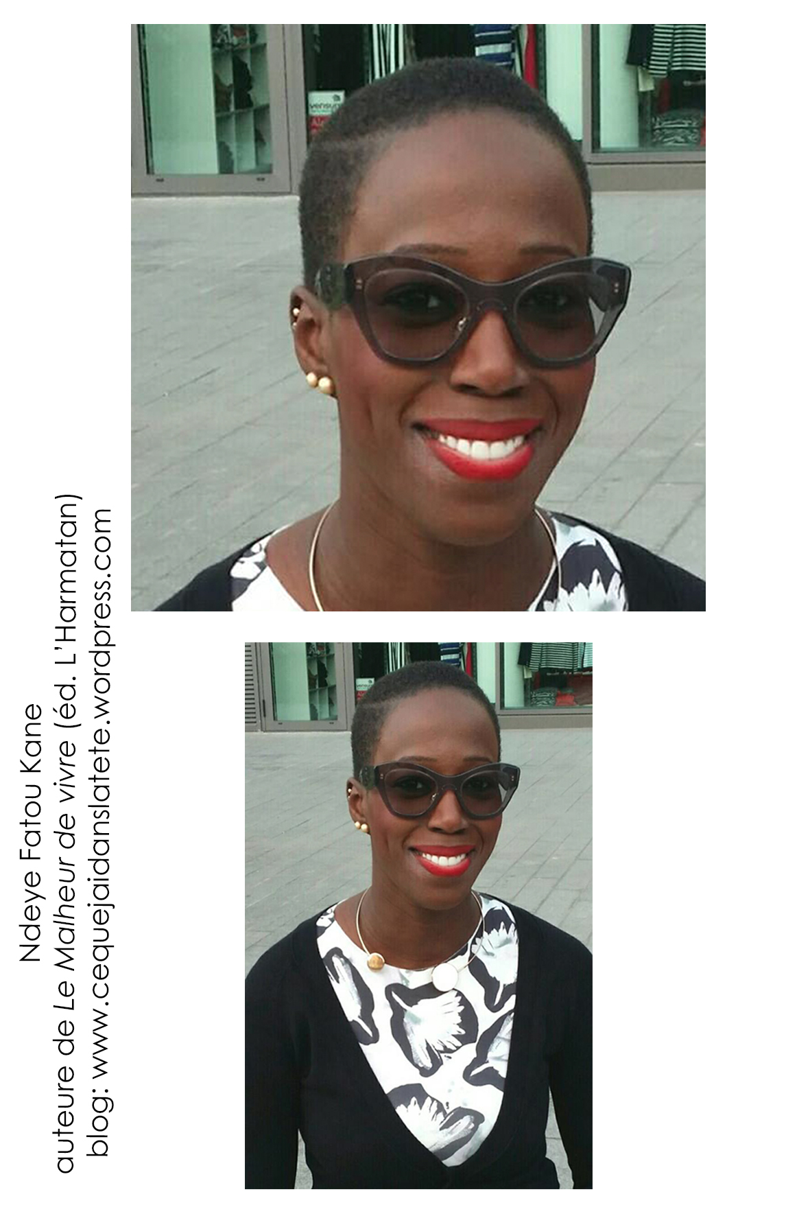 Son premier roman Le Malheur de vivre (2014, l’Harmattan) l’a propulsée dans la cour des grands, et son blog (www.cequejaidanslatete.wordpress.com) est une véritable mine d’or pour les novices en littérature. Je lui souhaite de publier plus d’ouvrages qu’elle, mais Ndèye Fatou Kane est à mes yeux la « Mariama Bâ du 21 ème siècle »! Rencontre: