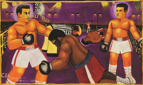 Les artistes congolais se sont donc inspirés de cet événement mythique, à l’image du peintre Moke (1950-2001), qui l’immortalise dans un style figuratif narratif empreint de Pop Art. Monsengwo Kejwamfi dit Moke est à la tête d’une génération de peintres kinois qui documentent le quotidien de la capitale, à travers des scènes de rue, des ambiances nocturnes, des fêtes et des événements historiques.