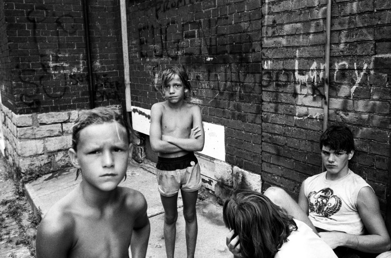 Stephen Shames, Boys hang out in Lower Price Hill a community of poor whites from Kentucky and West Virginia,1985Cincinnati, Ohio, USA. (Stephen Shames/courtesy Stephen Kasher Gallery)