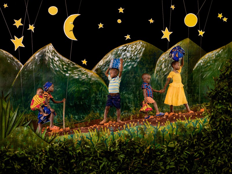 Patrick Willocq (1969, Strasbourg) s’attache à recréer des compositions à la frontière du réel. Tout est magnifié dans l’univers de l’artiste pour dépeindre des situations contemporaines délicates. Ici, en l’occurrence, cette scène dépeint des enfants burundais en route vers le camps de réfugiés de Nyarugusu, en Tanzanie.